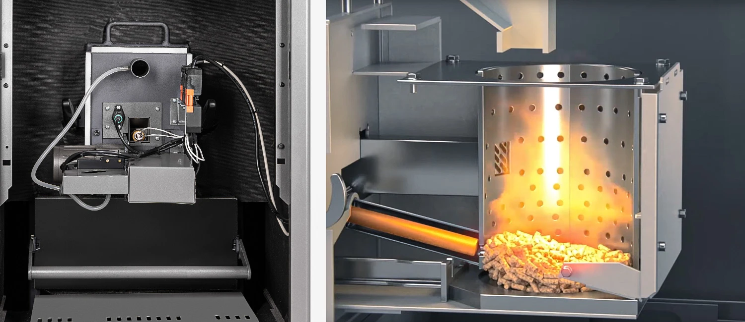 Palenisko wyposażone jest w automatyczny system czyszczenia popiołu. Dolna część rusztu posiada system czyszczenia, który okresowo odprowadza popiół powstający podczas spalania do popielnika. System ten usuwa popiół nawet podczas pracy kotła, co umożliwia czyszczenie bez konieczności wyłączania urządzenia. Optymalizuje to zużycie paliwa i maksymalizuje komfort użytkowy.