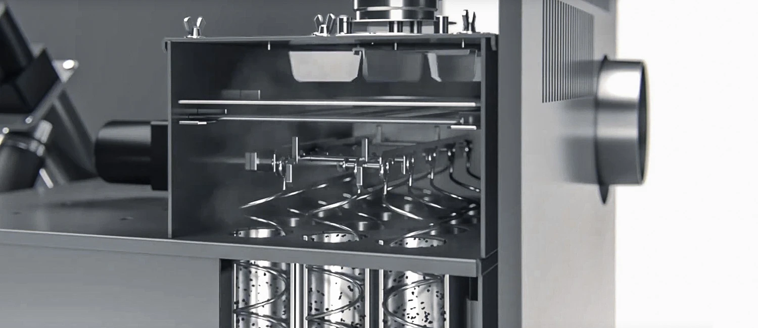 Zestaw sprężyn czyszczących, które dodatkowo zawirowują spaliny, poprawia wydajność spalania i jednocześnie czyści wymiennik ciepła z resztek popiołu. Sprężyny czyszczące są połączone z napędem silnika za pomocą układu krzywkowego, który regularnie porusza je w pionie, czyszcząc w ten sposób cały wymiennik ciepła.